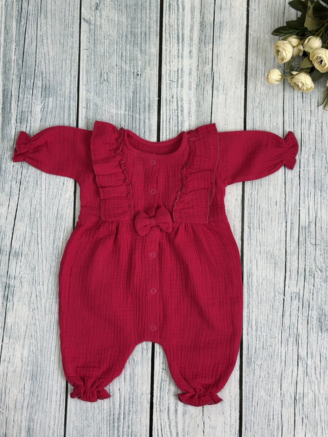 Комбинезон  с бантом из муслина для девочки. Очень красивое и мягкое, в живую еще лучше