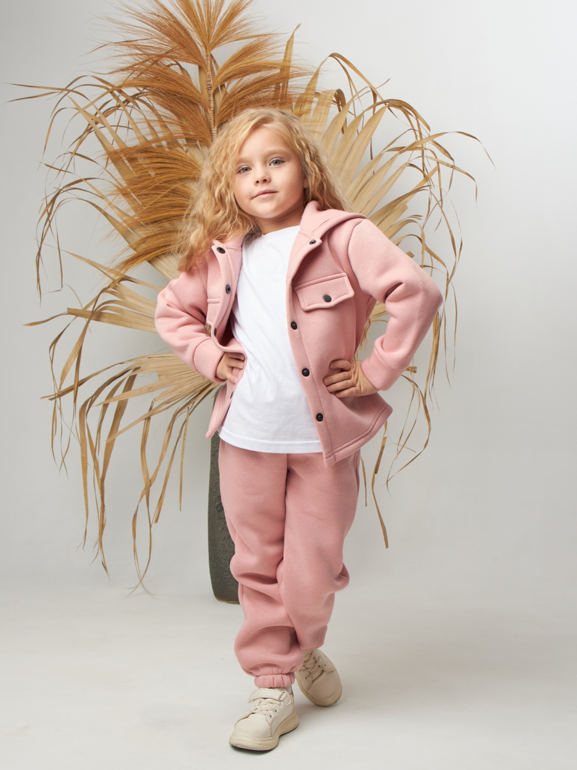 333. Костюм детский (Брюки+Толстовка) на кнопках, пудра, хлопок 65%, 35% ПЭ, 3-х нитка с начесом 122,128,134,140